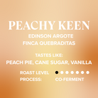 This unique lot showcases Edinson’s experimental approach, a Peach Co-Ferment where ripe coffee cherries are combined with fresh peaches during fermentation. The result is a beautiful harmony of fruit expression and terroir, crafted with precision from start to finish.